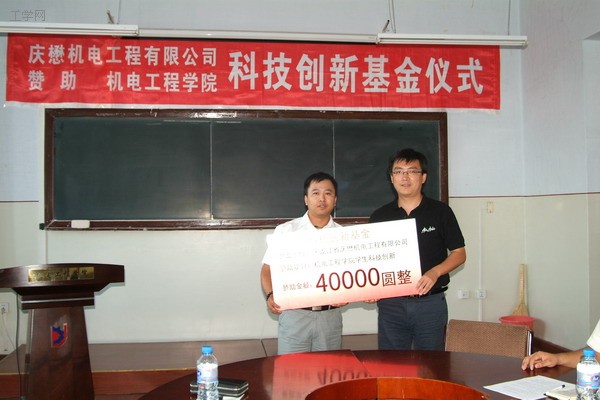 9月4日,黑龙江省庆懋机电工程有限公司赞助我校英国上市公司365四万元,作为科技创新基金。从去年开始,庆懋机电工程有限公司便开始进行赞助,四月份英国上市公司365开展的“庆懋杯”科技创新活动,在我校掀起一股创新热潮,为校“五四杯”,全国“挑战杯”挑选出了大量优秀的作品。