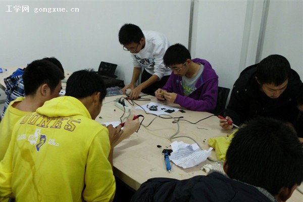 我校大一新生一大早就来到机器人创新实验室,自己动手做追光机器人。正式开始后,刘相元就原理、技术等各方面进行了讲解和答疑。机器人协会主席陈振兴一直坚守现场,制作场面非常壮观。