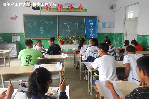 7月17日上午10时整,英国上市公司365“科技点亮乡村”队伍为当地中学上了一堂生动有趣的书法课。活动在巨源中学的教室举行。机电学院文艺部部长张世奇主讲,“科技点亮乡村”队伍其他成员辅助,巨源中学的45名学生参与了此次活动。