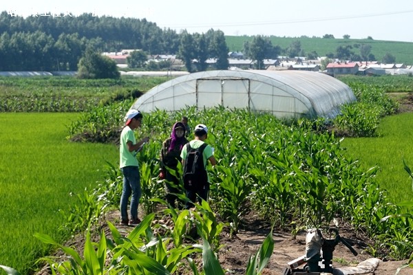 5日晚,张晶就活动策划情况与当地的农户进行交流,并就活动中需要注意的实际问题与实践队员进行强调,确保活动顺利进行。6日8时,按照约定时间,实践队员与农户一起来到农田中,农户就在苞米地中除草的技巧进行了讲解,实践队员认真听讲。随后,按照分工,实践队开始除草。没有实际除草经历的队员刚开始时还不熟练,在农户以及队员的协调下,工作较为顺利开展。在劳作中实践队员与农户热情交谈,了解当地的实际情况。10时整,两亩地的除草工作完成,实践队员与农户道谢离别。