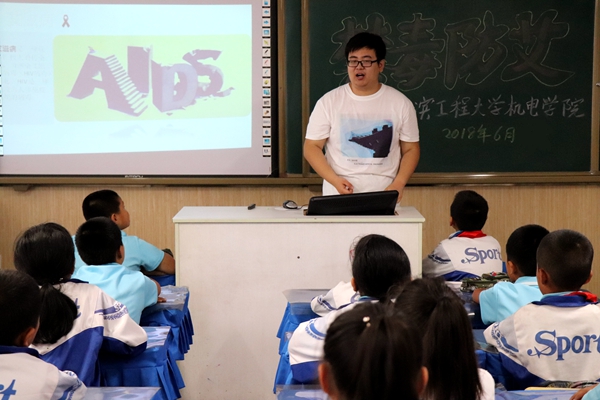 祖宏斌通过小动画的形式展示艾滋病病毒如何在身体中传播和如何攻破人体免疫防线,并向同学们解释人体免疫防线的重要性以及被攻破后对人体的伤害;向同学们简要介绍了艾滋病的传播方式以及相关防护方法,同时,通过幻灯片与视频的结合,为同学们展现艾滋病患者在社会中的不幸遭遇及被人歧视的情景,让同学们真切地感受到艾滋病患者这一弱势群体在社会上不幸。