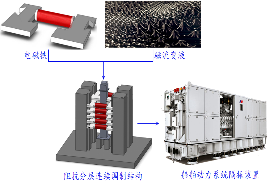 磁流变液(Magnetorheological Fluid,MRF)作为智能材料的一种,在振动控制领域具有广阔的应用前景。团队提出了一种阻抗分层连续调制结构,该结构通过控制磁场强度,使MRF阻抗按周期、非周期、特定波形分布,进而实现了对振动(弹性波)控制,团队在国家自然科学基金面上项目(51675111)的资助下,对该结构振动传递特性进行了深入研究,相关研究结果已经发表发表SCI检索论文17篇,EI检索论文3篇,授权发明专利7项。