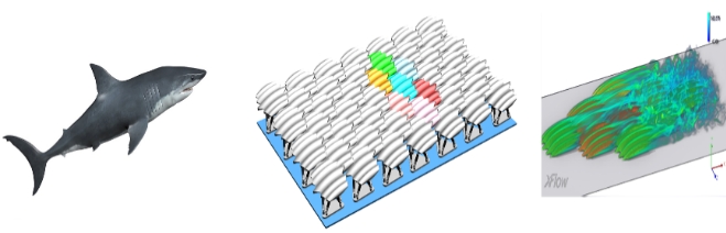 针对水下表面减阻降噪技术存在的局限性,团队根据仿生学原理,参考鲨鱼盾鳞结构,盾鳞覆瓦式蒙皮,为船舶、水下航行器、大型流体运输管路、高速远程飞行器等有较大减阻降噪需求的应用场合提供了一种新的解决方案。在此方面,团队已获得国家自然科学基金面上项目2项(51775123和52075111),在其资助下,目前已经发表SCI检索论文21篇,EI检索论文3篇,授权发明专利6项。