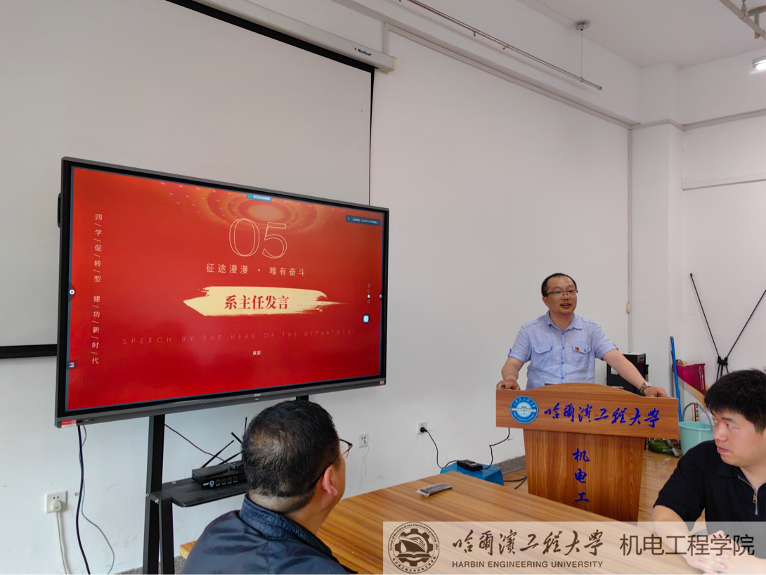 最后,工业设计系主任商振同志做总结发言。商振同志对毕业生寄予厚望,希望哈工程研究生在未来的工作生活中努力奋斗,取得好的成绩,回馈母校与社会。商振同志指出,哈工程人有着纯净的红色军工血液,要积极响应党和国家的号召,深入学习习近平新时代中国特色社会主义思想和党的二十大精神,将党的先进理论结合到日常的科研和工作之中,坚持学思用贯通,知信行统一,为军工事业发展与国家繁荣富强做出自己的贡献。