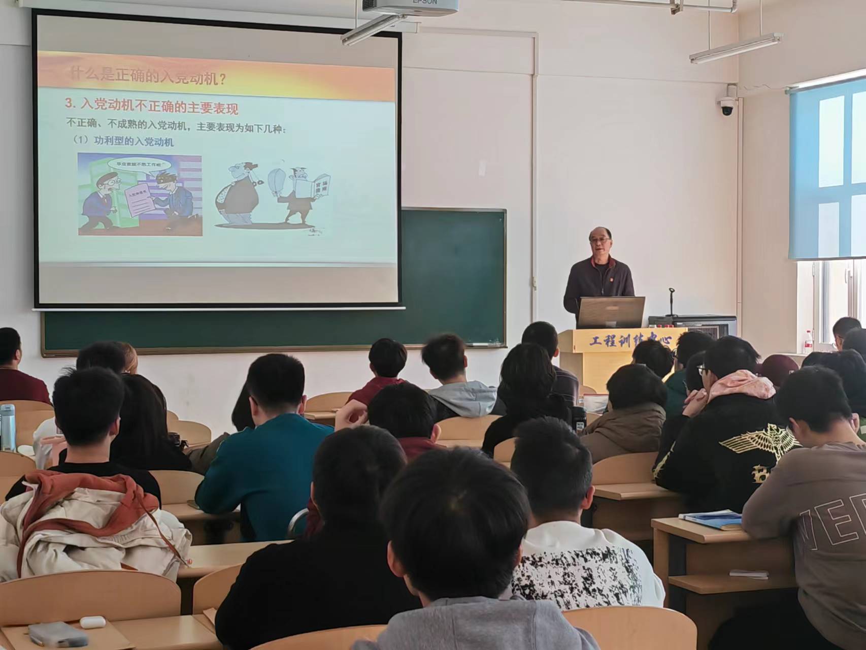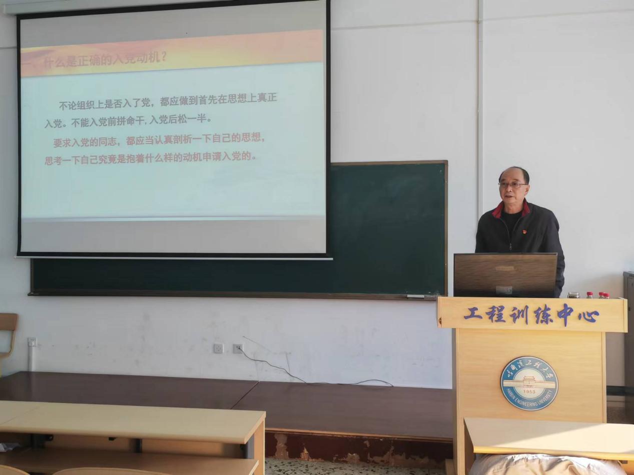 随后,吕春雷讲述了正确认识“端正入党动机”的意义和要求。借由对一些入党动机不纯的反面事例的展示,给大家引出了只有为了献身共产主义事业、更好地为集体、为其他同学服务、为人民服务而要求入党,才是唯一正确的入党动机这一主旨。它与党的性质、宗旨、奋斗目标和党员条件是一致的。