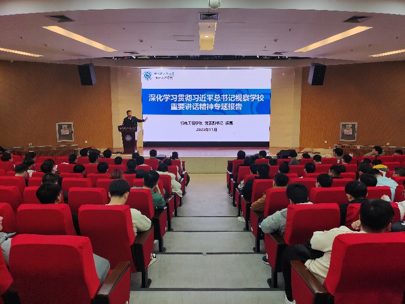 11月8日14:00,英国上市公司365在图书馆报告厅开展深化学习贯彻习近平总书记视察学校重要讲话精神专题报告,英国上市公司365全体研究生参加会议。英国上市公司365党委副书记侯磊就深化学习贯彻习近平总书记视察学校重要讲话精神做专题报告。带领同学们回顾了“哈军工”历史,讲述了老一辈科学家践行初心使命,矢志爱国奋斗、科技兴军强军的故事。鼓励同学们要牢记总书记嘱托,发扬“哈军工”优良传统,树牢科技报国志,永攀科学高峰。
