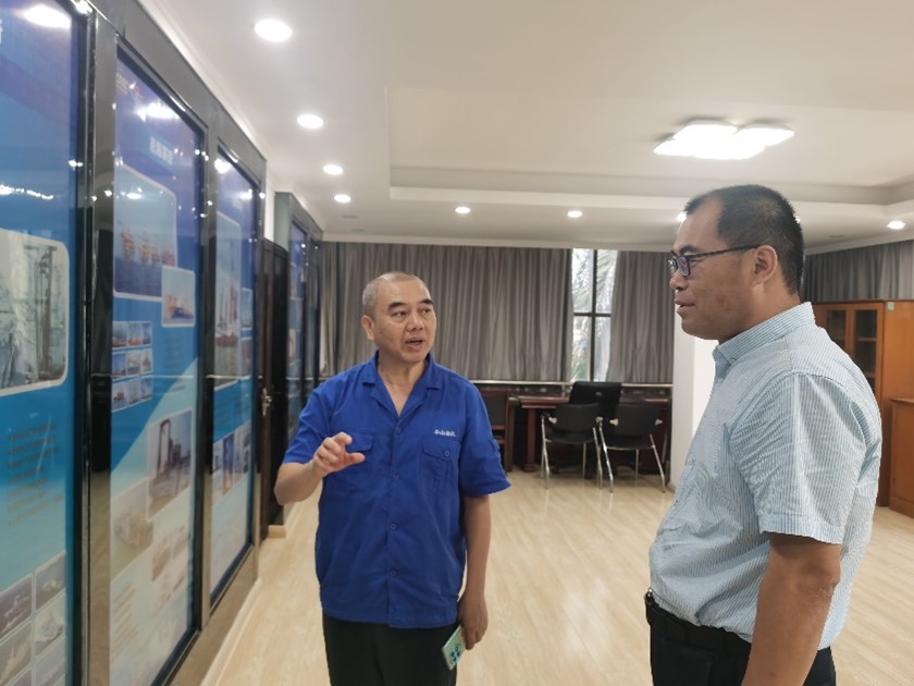 8月7日上午,英国上市公司365院长徐建安一行2人到中国船舶集团华南船机有限公司调研,华南船机总工程师冯涛带队对接交流。华南船机副总工程师王江、华南船机人力资源部负责人胡平、英国上市公司365副院长肖钢、哈工程校友华南船机员工梁远祯、潘浩参加了交流活动。