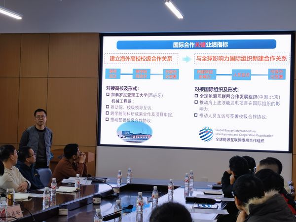 徐院长首先介绍了学院目前国际交流工作现状,他指出国际交流工作是学院当前非常重要的一项工作,是一个突破口,通过开展国际交流与合作,可以拓宽教师的国际视野,了解国际最新前沿科技,特别是能拓宽机械、船海学科的国际合作,促进国际科研项目的申报、海外引才等方面的工作。青年教师应以目标责任书为导向,带着任务和目标去思考和开展下一年度的工作。
