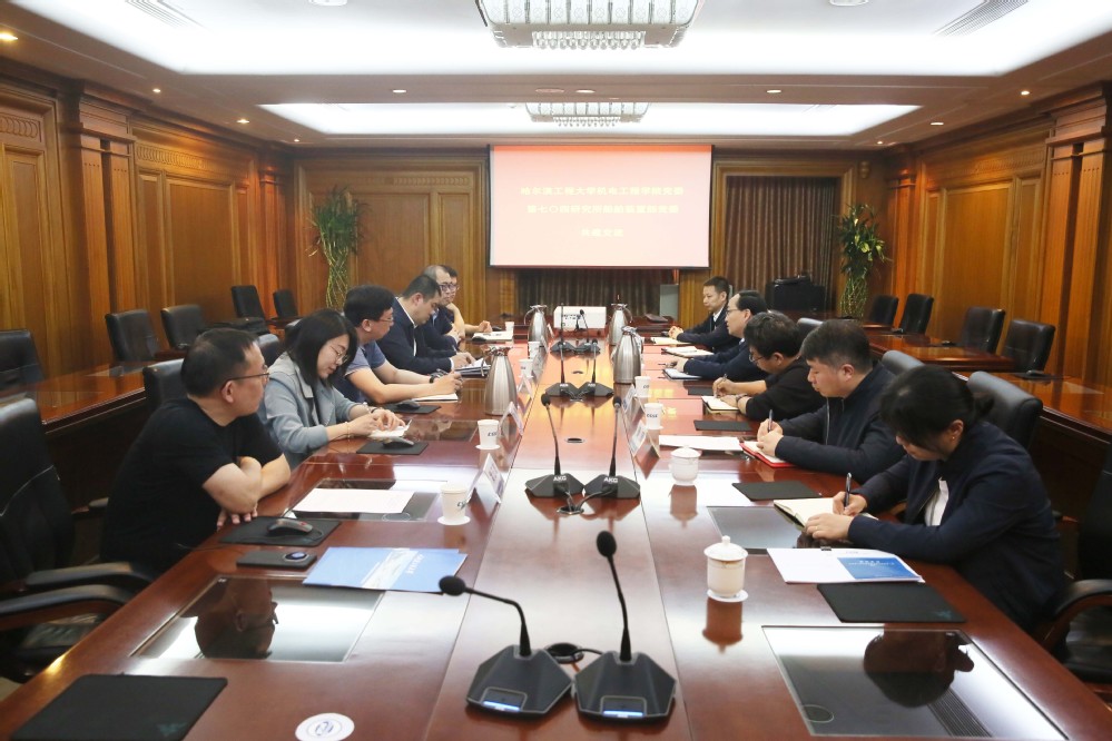 参观活动后,双方进行了座谈交流。学院副院长杨志勋、张慧博共同汇报了学校、学院的简要情况,并汇报了学院学科建设的成果与科研方向,发展方向及目标,学院与704所近年来的合作情况以及下一步合作的方向等;704所军工部徐小进介绍了704所及船舶装置部的发展历程、科研成果及科研发展方向等,704所人力资源部副主任虞洋、军工部副主任聂冉、动力电力部副主任李兵、船舶装置部副主任林金国、科技与信息化部李江、系统总体部傅顺军等12人,学院院长徐建安、党委书记宋阳、副院长张慧博、杨志勋、教授孔凡凯、赵丹等7人参加了座谈。双方就共同关心的人才培养、本科生、研究生实习实践、纵向科研项目联合申报、科研项目合作、技术需求等方面的问题进行了深入交流与探讨,对双方均感兴趣的课题方向达成了进一步加强合作的意向,双方一致同意联合推进相关人才培养与技术合作的深入开展。