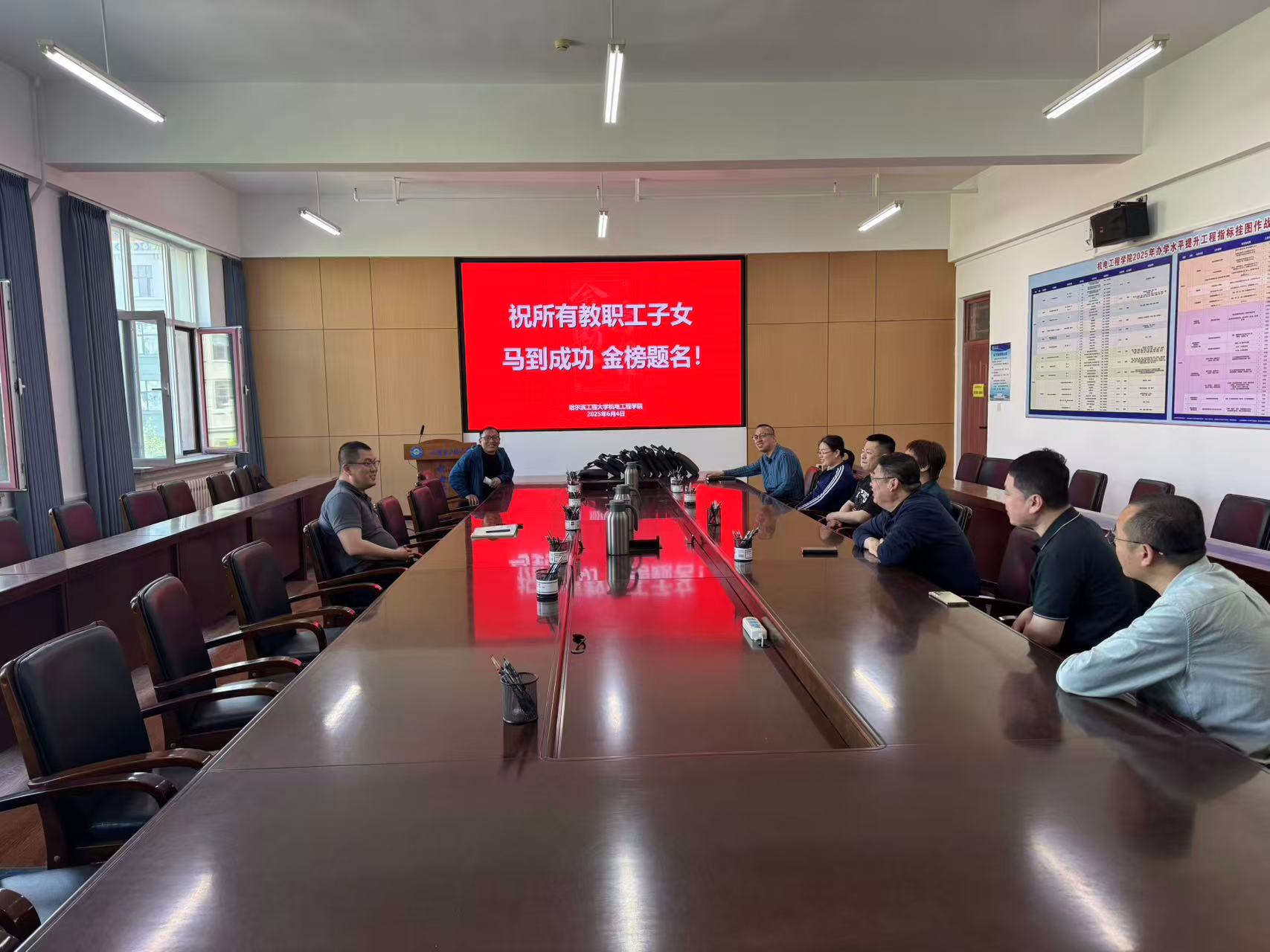 学院党委书记宋阳亲自为教职工送上了祝福。他表示,学院教职工既为教师,需在工作岗位兢兢业业、立德树人;作为家长,需从心理支持、环境营造、营养保障、作息管理、有效沟通等方面帮助孩子平稳度过备考期。感谢大家在孩子中高考的关键时期,仍然能坚守岗位,恪守职责,一如既往地完成教学科研任务。十年寒窗磨一剑,今朝出鞘试锋芒,祝中考子弟:冲一三,拼六九,不达附中不罢休;祝高考子弟:保底双一流、冲进985,力争本博贯通班;愿孩子们“乘风破浪”,考场“披荆斩棘”,金榜题名、前程似锦!